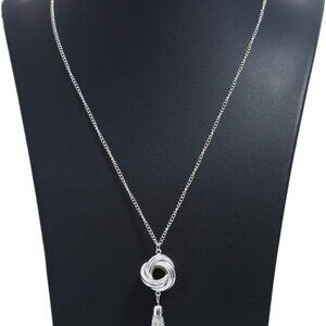 Long Tassel Pendant Necklace for Women Knot Disk Circle Tassel Long Silver Chain