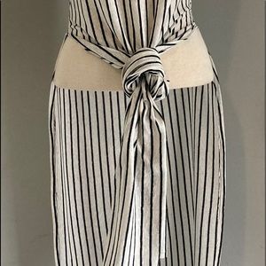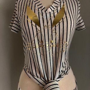 Long side slit stripe tee with gold character