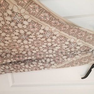 Long flowy halter like top ties at shoulders with pointed hem. 100% polyester. Never worn.