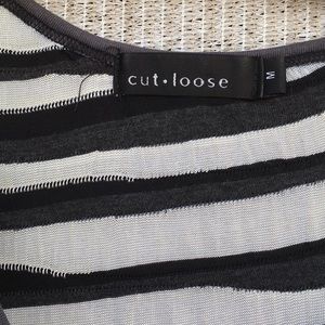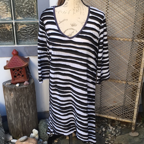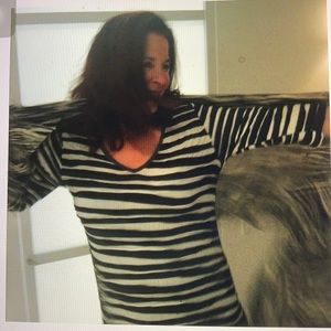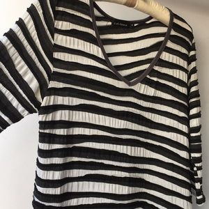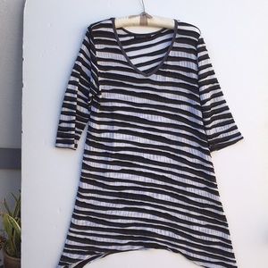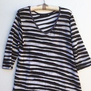 Gorgeous black and white cotton spandex blend top 35 inches from top to him 20 inches across chest, 20 inches on the sleeves that are three-quarter length.