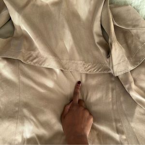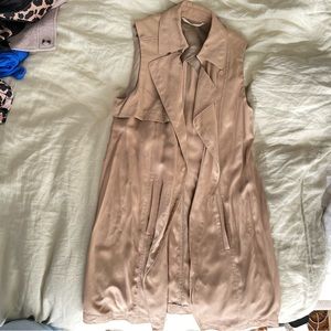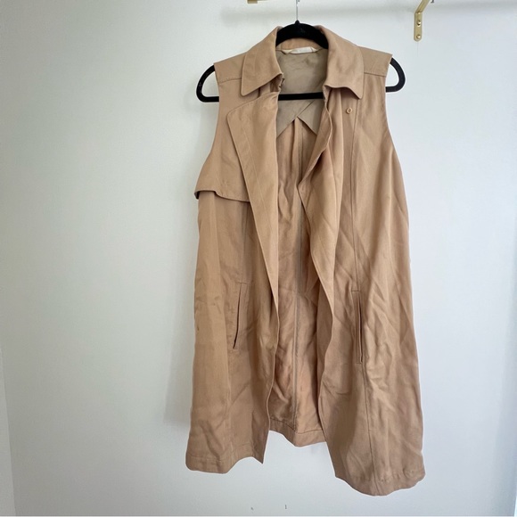 Long vest Tan Perfect for layering No marked size - fits M/L No marked brand Has some markings as pointed out in photos