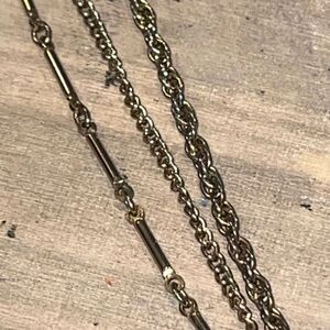 Long Vintage Gold Tone Triple Strand Necklace 53” Long in very good condition
