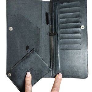 Long Wallet Red Faux Leather Travel Passport Card Slots Zipper Pocket Organizer