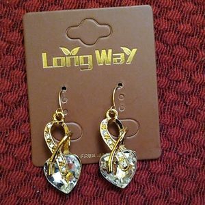 𝅺Long Way Fashion Earrings Crystal and Gold Colors