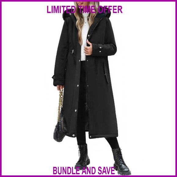 Style: Long maxi puffer coat with detachable hood and faux fur trim