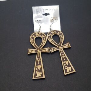 Long Wooden Ankh Earrings ancient cross earrings Hieroglyphics