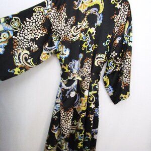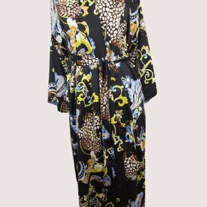 Long Wrap Lingerie Robe Provencial Paisley Print Black