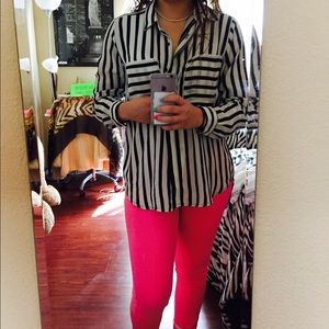 Gorgeous fresh blouse with extra long tail along back. & two front pockets; really comfortable! Never wore it!! Too big on my petite body lol.