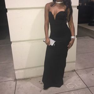 Long black deep plunge dress
