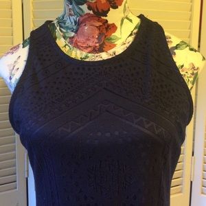 Lined to mid thigh. High neck, racer back, but wide straps so easy to pair with a bra. Beautiful fabric detail and side split. Washed once, never worn, only tried on.