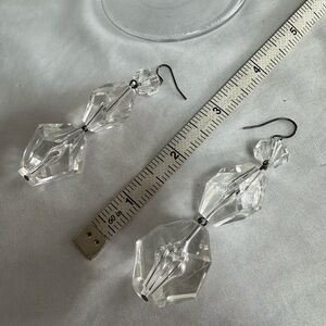 Long chunky abstract style clear bead dangle earrings
