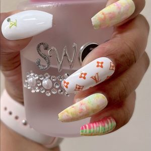 Description: Summer vibes custom press-on nails. Created for someone who loves to be BOLD and UNIQUE, yet stylish. This set comes with 12 nails, cuticle pusher, and glue. See all photos for details.