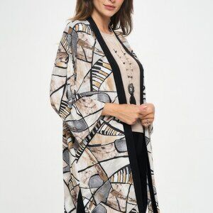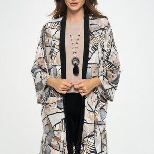 Make a polished impression in this long contrast jacket featuring quarter-length sleeves and functional pockets. The longer silhouette offers flattering coverage, while the soft stretch fabric keeps it light and breathable. Designed with an eye for clean lines and practical details, this jacket is a versatile outer layer. Made in the USA.