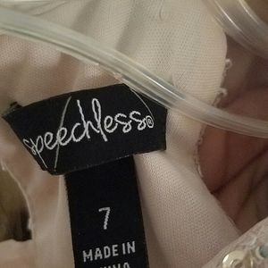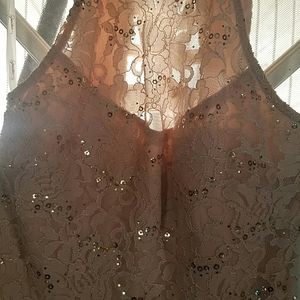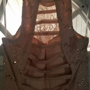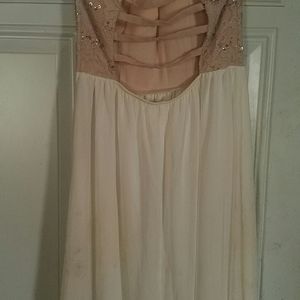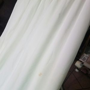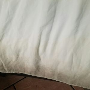 Used only once. It does need to be washed. Either than that It's in great condition. Color creme, gold and pearl. Beautifly hangs at the bottom a bit. Light and soft fabric.