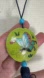 Two blue color green beads flank the medallion with a tassel at the bottom.