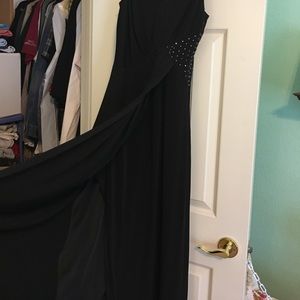 Nice long dress for formal events, classy rhinestone embellishments on side, 95% polyester 5% spandex