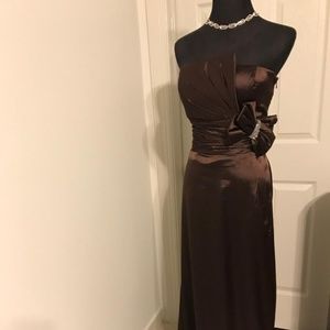 Purchased this new with tags lovely brown dress for a special event but found a black dress I like better! Comes with matching shawl! Beautiful! Medium, fits like an 8-10.