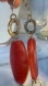 These earrings have an abstract funky long mauve colored bead which is between two hammered silvertone disc. There is a leather beaded tassel at the end of the earrings.