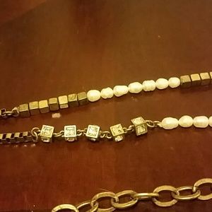 Long gold, pearl, rhinestone chain