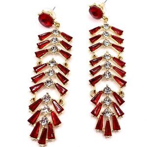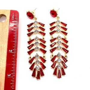 Women’s female gold tone Red crystal and clear elegant rhinestone dangle drop shoulder duster earrings New with tags See pictures for measurements