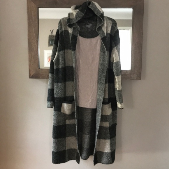 Long grey and cream jacket with pockets and hood