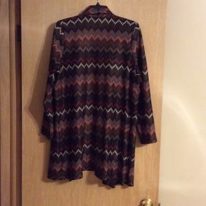 Jacquard print in brown, orange, beige. Perfect over a camisole during all seasons.
