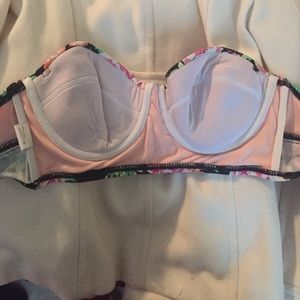 This long line bikini top goes perfectly with plain black bottoms. Worn once! I'm a B cup and it fits comfortably. Lots of padding and two straps to make sure you can enjoy the waves, too! 🌊