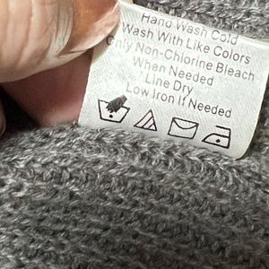 Dark grey, long open front cardigan by 7 Seasons. Fitted cuffs create the effect of small balloon sleeves. Front patch pockets. Excellent condition. Size Large. Throw on over a sheath dress, jeans, or athleisure.