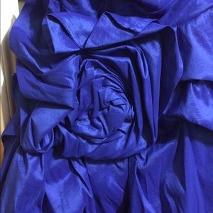 Royal blue mermaid style dress. It gets tighter around the bottom. There is a flower on the bottom front. This is slightly stretchy and worn once for prom! Exact measurements per request :)