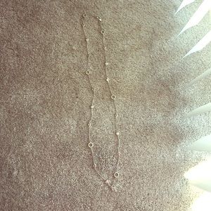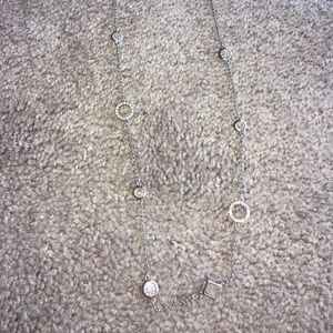 Long silver patterned Lia Sophia necklace. Cute accents can be long or wrapped.