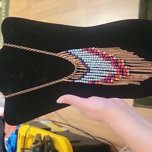 necklace have beautiful beads you can used to make craft woth this beads is good condition the chain up is little bit discolor I will sent this this necklace with new earrings