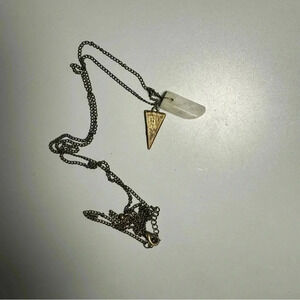 Long brass gold necklace with brass gold charm and rose quartz. No idea if Rose quartz is legit.