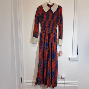 Tags plaid vintage collared long dress business casual Alice and wonderland holidays Christmas Valentine’s Day