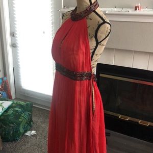 🌟Flowy red maxi dress that can be worn for various occasions.