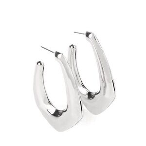 High sheen silver uniquely shaped hoop earrings. Oversized style. Smooth hammered texture. Post back. Hoop measures approximately 1" 1/4 in diameter.NWT