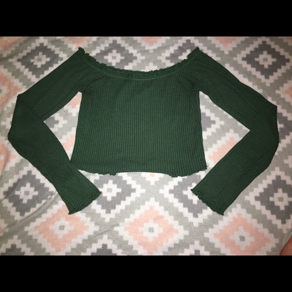 Beautiful evergreen color. Cropped. Off the shoulder. Never worn