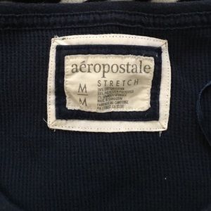 Long sleeve navy blue top from Aeropostale. Has buttons in front and brand name on left side of chest and down right arm. Good condition worn only a hand full of times