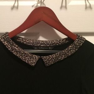 Great winter/early spring dress. Long sleeved with elastic waist and leopard print collar. Made of thick stretch material.