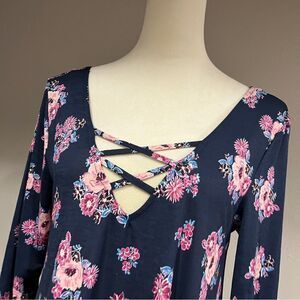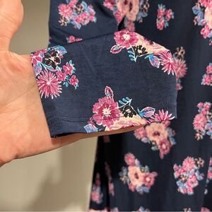 Long sleeve asymmetrical deep v-neck floral navy dress size M Medium