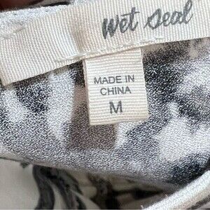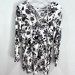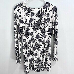 Long sleeve black and white floral print lace up back mini dress size medium