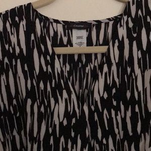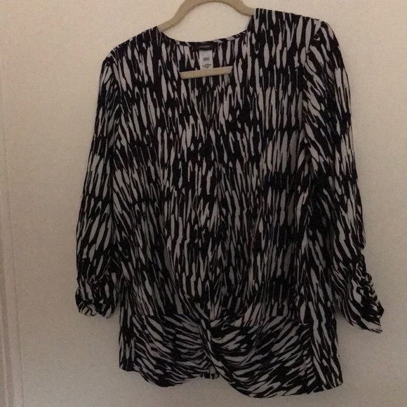 This blouse is brand new. It’s made of 97%polyester and 3%spandex. It’s a medium loose fit style.