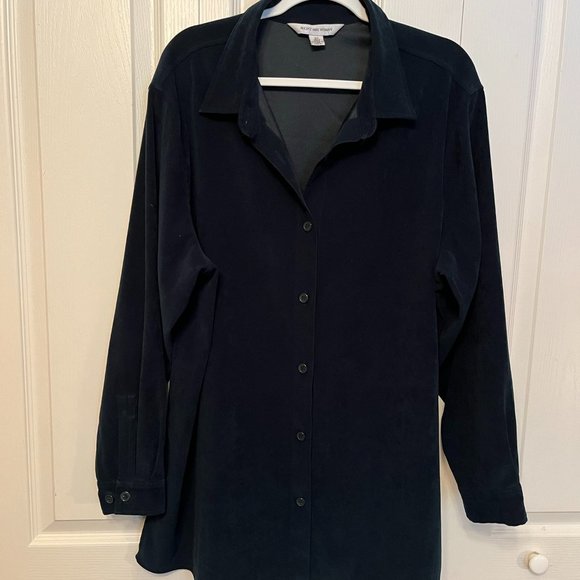 August Max Woman 2X dark green long Sleeve button down soft top 97% polyester 3% lycra