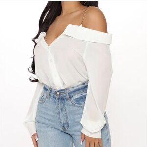 Brand New Ivory long sleeve off the shoulder , chain strap chiffon top
