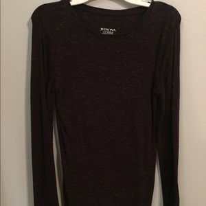 Long sleeve purple shirt. Has a scoop neckline and fitted sleeves.