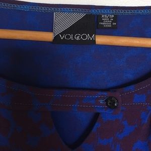 Blue and purple long sleeve dress with small cutout at neckline