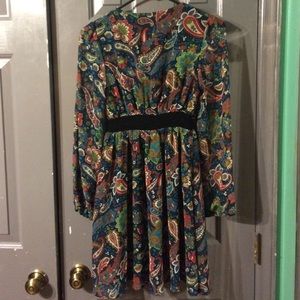 Long sleeve dress with sheer sleeves and belt