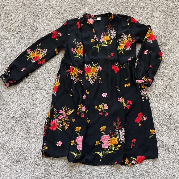 Long sleeve mini flowy dress with flowers. Black slip included