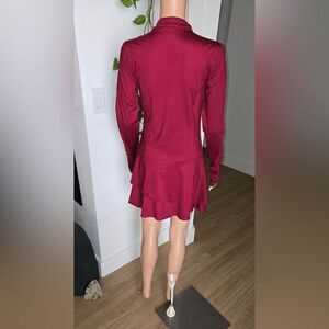 Long sleeve golf/tennis dress with thumb whole zip front side pocket size small poly knit fabric poly knit fabric