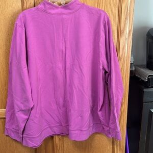 Pink, lightweight, long sleeve jacket. Snap closure. 95% cotton, 4% spandex. 27 inches long