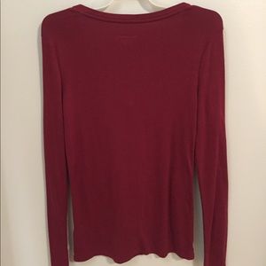 Long sleeve maroon/wine V-neck shirt